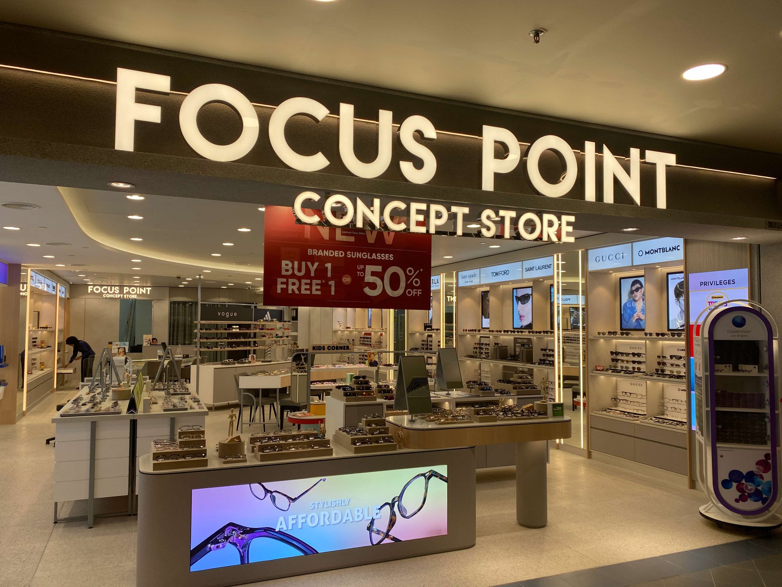 Listings >> Timepieces & Optical Focus Point 4 | LOWER GROUND www.focus-point.com.my A leading optical retailer offering a wide range of prescription glasses, fashionable frames, sunglasses, and contact lenses for all ages. Professional ye examinations and vision care services are available by qualified optometrists. Timepieces & Optical Photo gallery All photos (6)